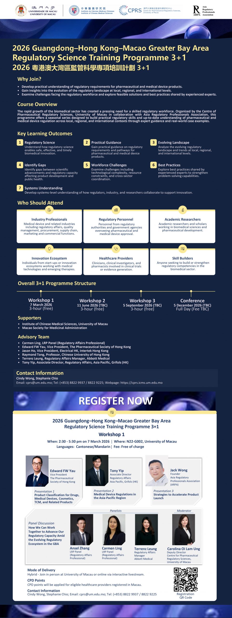 2026 Guangdong–Hong Kong–Macao Greater Bay Area Regulatory Science Training Programme 3+1: Workshop 1